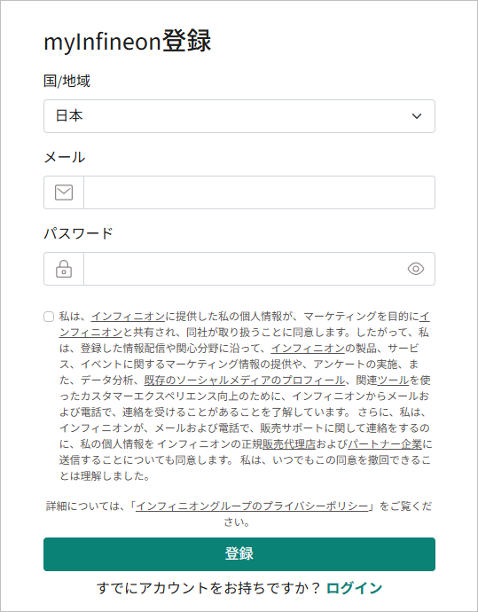 myInfineonは設計者・技術者向けの会員制ポータルサイトです。