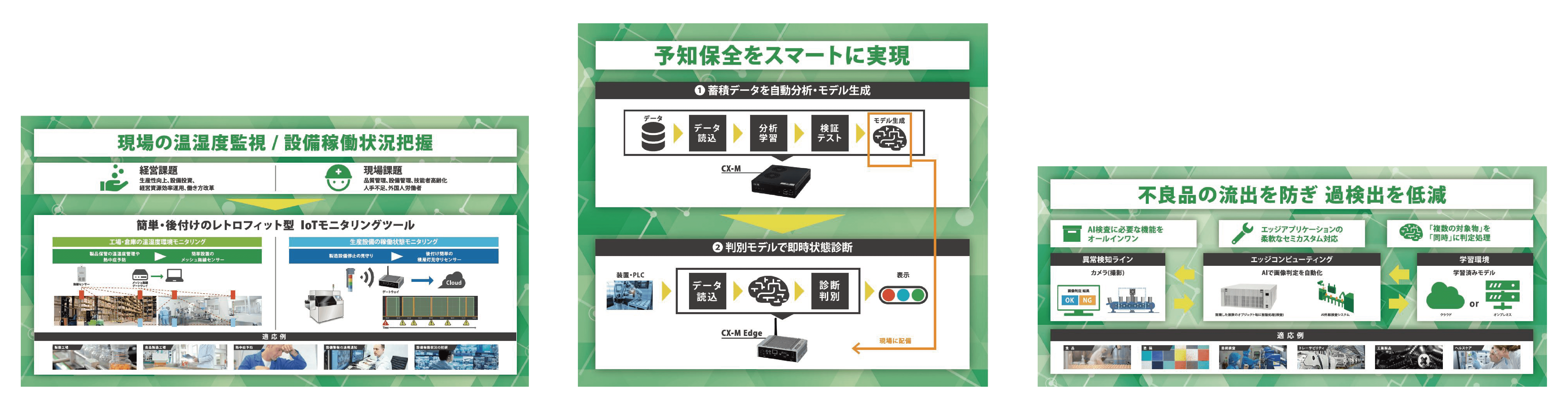 IoT/M2M展でも、注目が多かった生産現場の「設備の予知保全」「外観検査改善」「目視業務効率化」にテーマを絞り、ご紹介します。